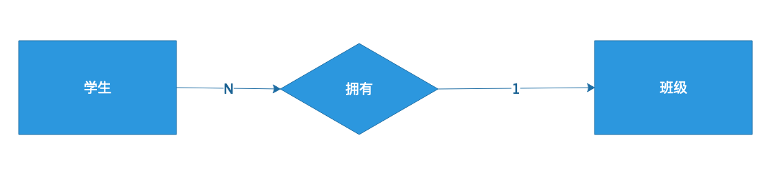 比如一个班级有多个学生,班级是 1 端,学生是多端。多端有 1 端的属性,也就是说多端里面应该放置 1 端的主键,那么学生表里面应该放置班级表里面的主键。