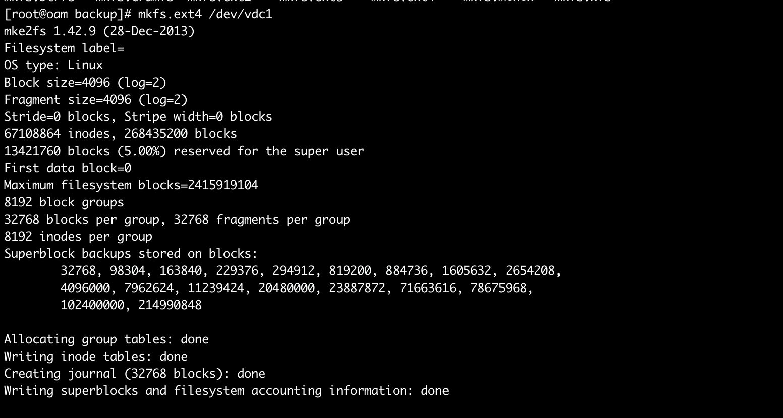 做完以上的这一切以后,通过命令“mkfs.ext3 +LV的路径”来格式化分区,然后进行挂载后就可以用了。