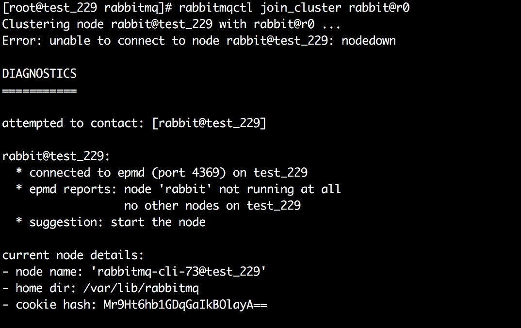 原因:在集群的所有机器都需要先执行`rabbitmq-server -detached`unable to connect to epmd (port 4369) on base_233: nxdomain (non-existing domain)