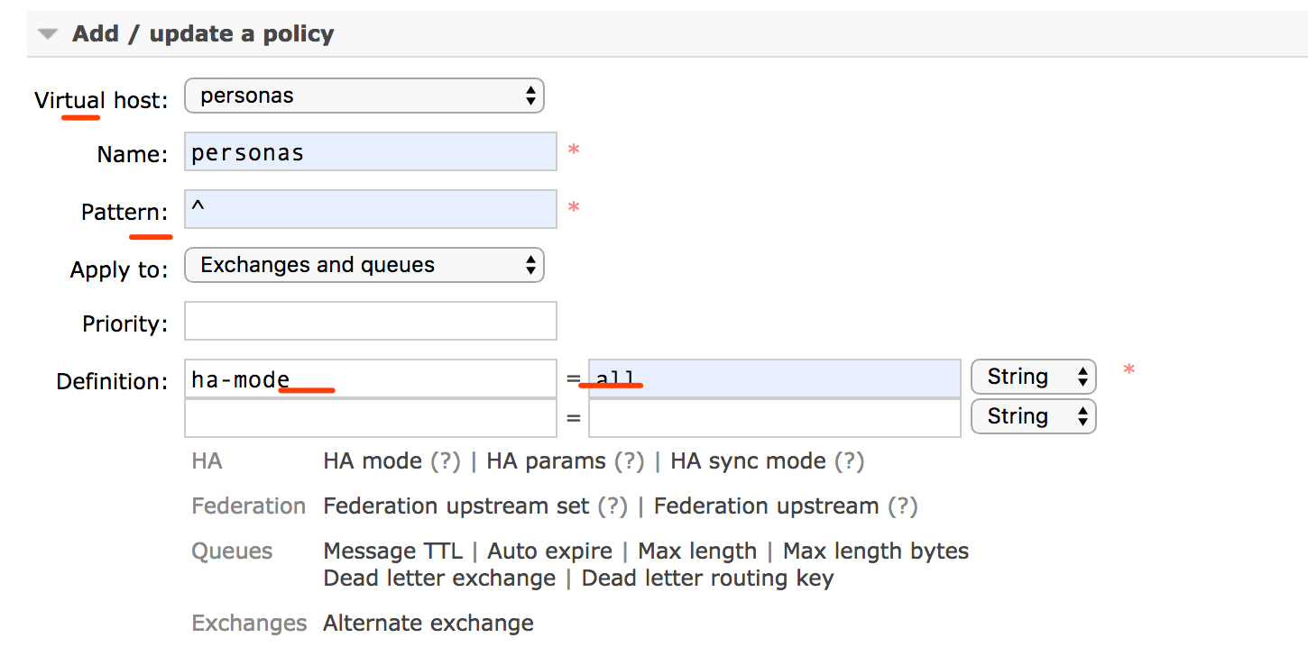- ha-sync-mode:进行队列中消息的同步方式,有效值为automatic和manual
